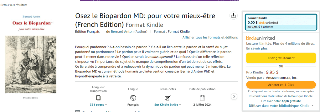 Ce livre veut vous faire découvrir une démarche concrète, nommée par l’auteur « Biopardon », pour vous aider à pardonner. Il contient des exercices, des fiches techniques, des feuilles de route qui la faciliteront. Vous pouvez entreprendre cette démarche avec ou sans accompagnement psychothérapeutique. Pas à pas, vous vous sentirez plus léger, plus libre, plus en santé.